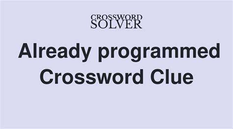 Already Programmed Crossword Clue. The crossword solver found 30 answers to already programmed, 6 letters crossword. We think the likely answer to this clue is preset.