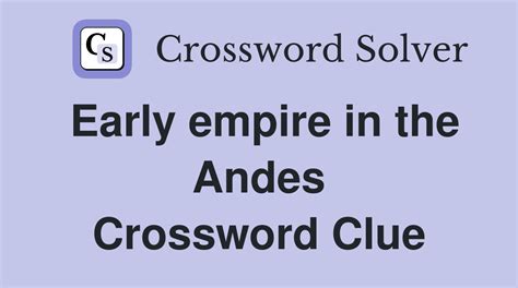 Andes Empire Crossword Clue. The crossword solver found 30 answers to andes empire, 4 letters crossword clue. We found 20 possible solutions for this clue.