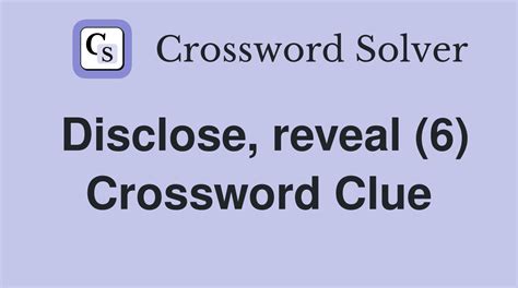 Crossword Clue Disclose. We will try to find the right answer to this particular crossword clue. Web today's crossword puzzle clue is a quick one: