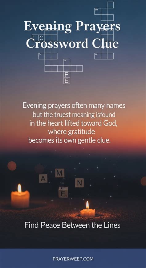 Evening Prayer Crossword Clue. Web evening prayers crossword clue the crossword solver found 30 answers to evening prayers, 7 letters crossword. The crossword solver finds answers to.