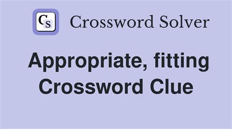 Proper Fitting Crossword Clue. Apt, noun, tailor by crosswordsolver io. The crossword solver finds answers to.